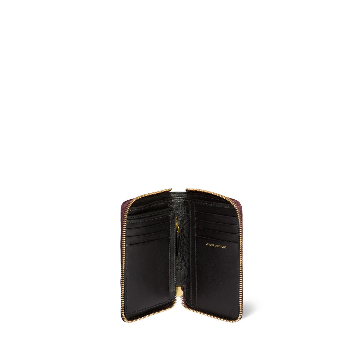 A sleek, zip-around wallet designed for everyday ease. It features dedicated card slots and a central zippered compartment to keep your change secure. Crafted from a refined blend of goatskin and lambskin for a soft, luxurious feel.
