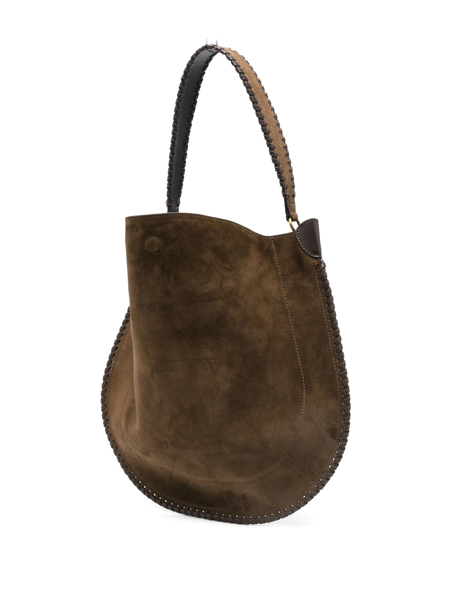 This brown suede handbag features a soft, curved silhouette and a clean, understated design. The braided trim adds subtle texture, while the top handle offers a structured, effortless carry. Designed with simplicity and versatility in mind, it pairs easily with both everyday and elevated looks.