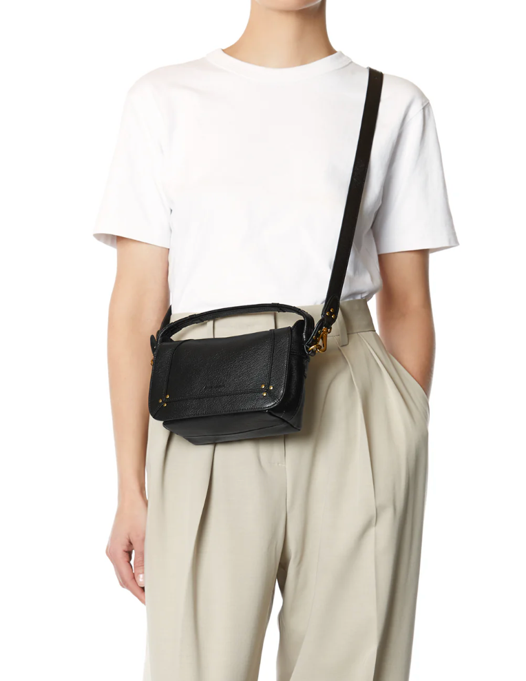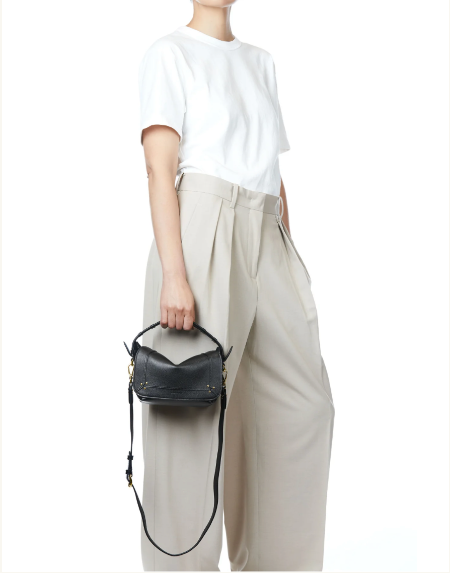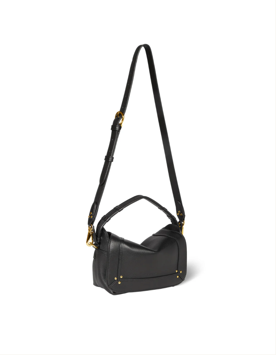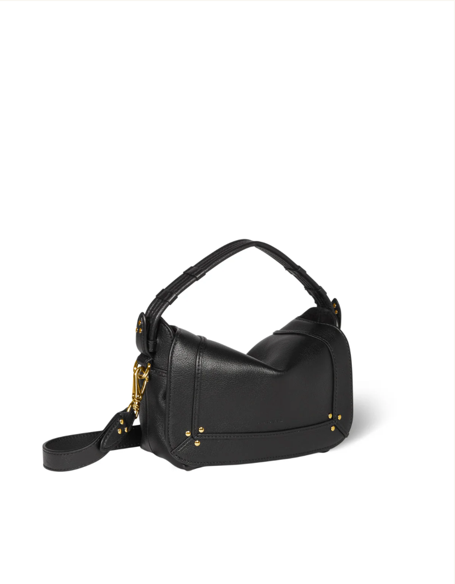 A quilted leather handle and a long adjustable and removable shoulder strap from 66 cm to 97 cm (size S) and from 84 cm to 115 cm (sizes M and L). Closure with a magnetic leather flap. A zippered exterior pocket at the back of the bag. A keychain link inside the bag. A clean design with numerous meticulous and discreet craftsmanship details and deconstructed lines. The precise work on the four stitches of the handles highlights the quality and care given to every detail. The shoulder strap and handle attachments feature a relief reminiscent of horse harnesses, adding a touch of elegance and tradition. Made in Italy Handbag 80% Calfskin 20% Goatskin / Lining 100% Cotton Can be associated with all our shoulder straps