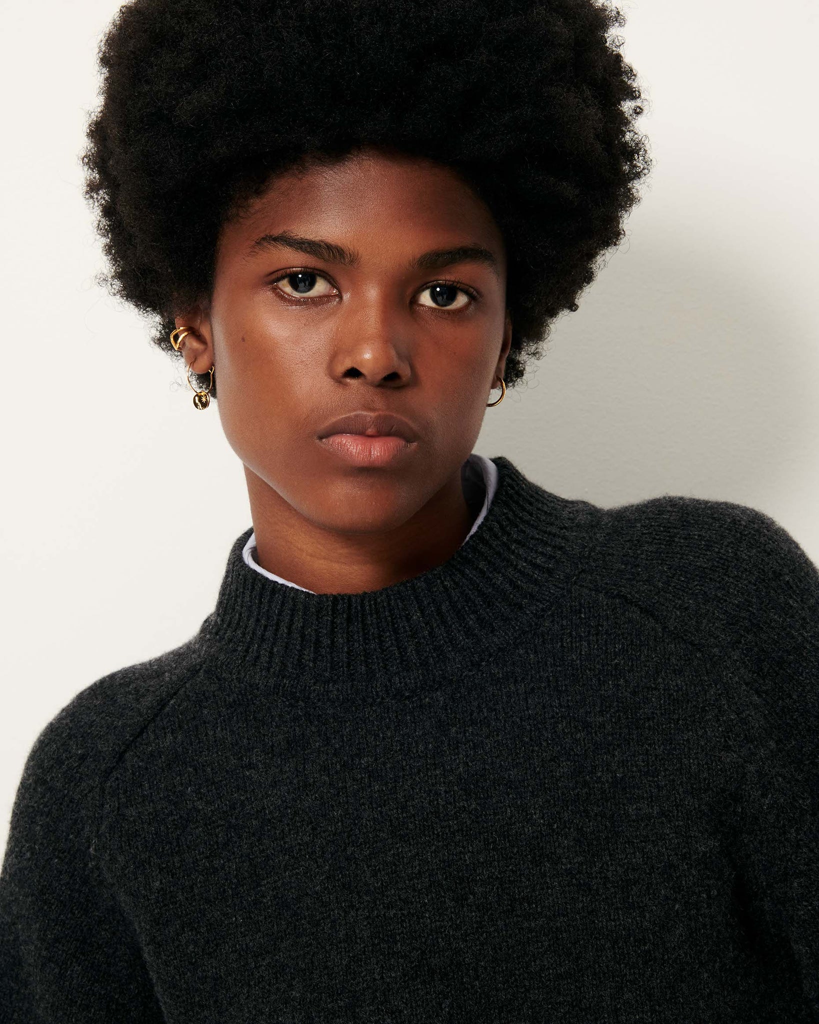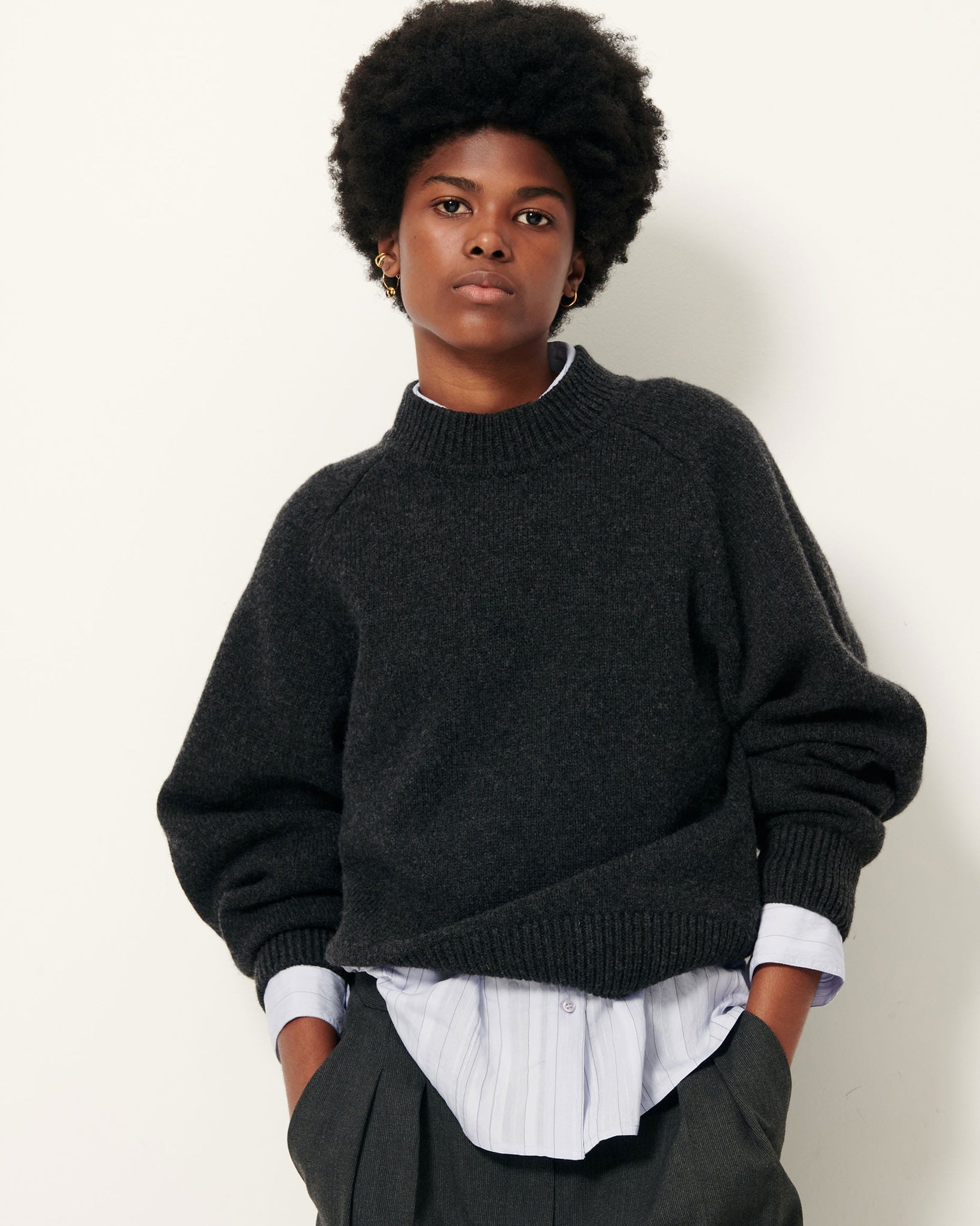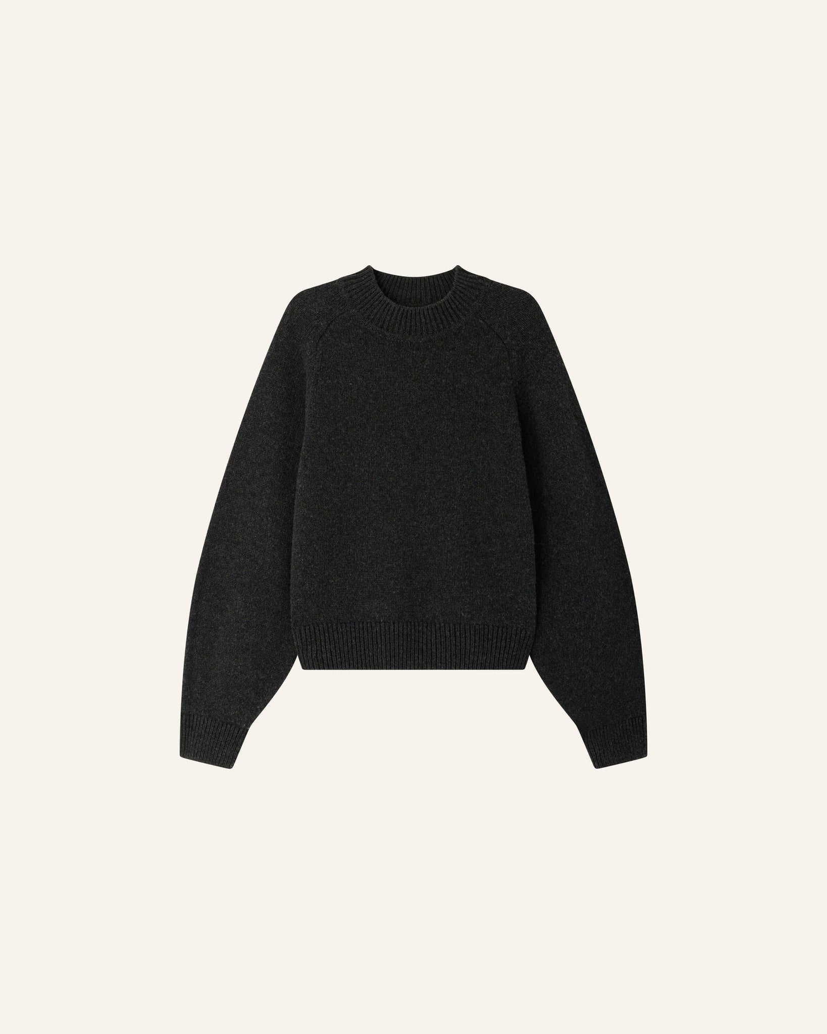 Balloon sleeve sweater in a soft Merino wool and cashmere knit.