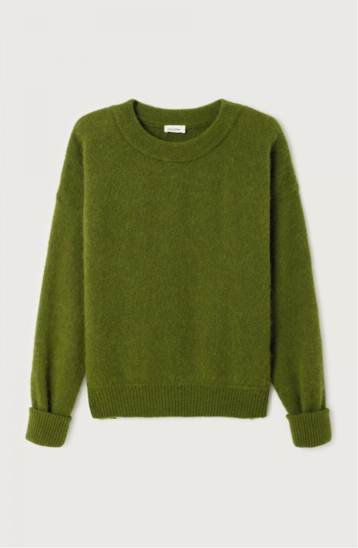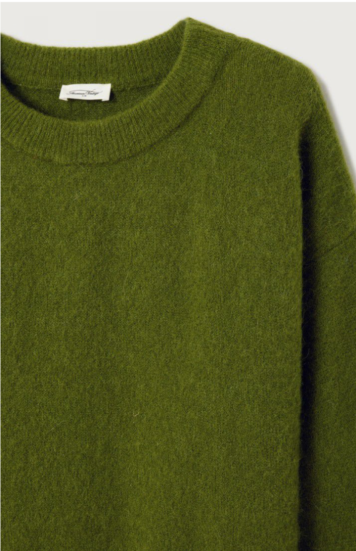 A signature piece from American Vintage, the Vitow jumper combines laid-back style with luxurious comfort. Crafted from fluffy Italian yarn, its warm, compact knit and loose fit create an effortlessly cozy silhouette. With a wide boat neckline and ribbed finishes, it pairs perfectly with denim or skirts for an easy, elevated look.