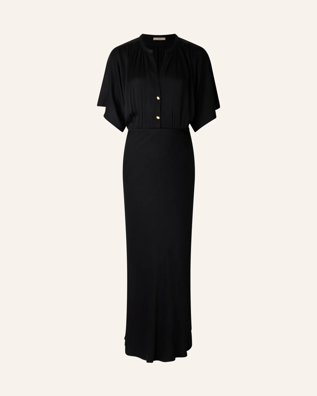 Long, slightly flared dress in double seersucker with a crinkled effect.