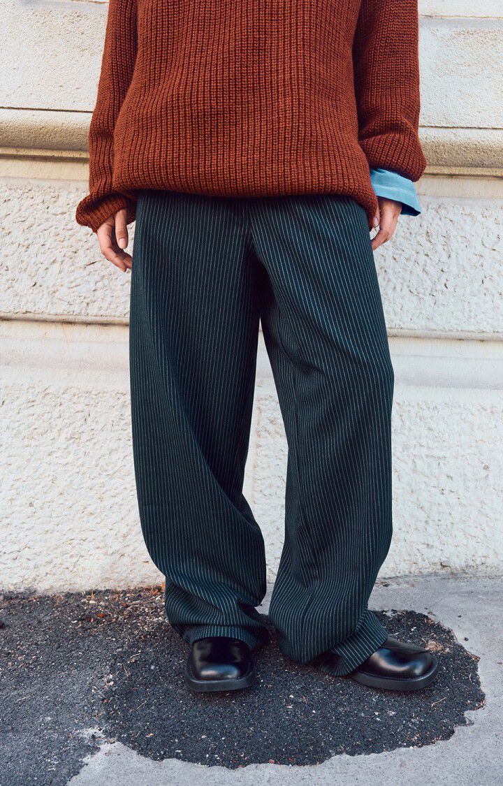 These striped flannel straight-leg trousers offer a blend of elegance and comfort, finished with an elasticated waistband. Style them with a shirt or a cosy knit for a modern, refined outfit.