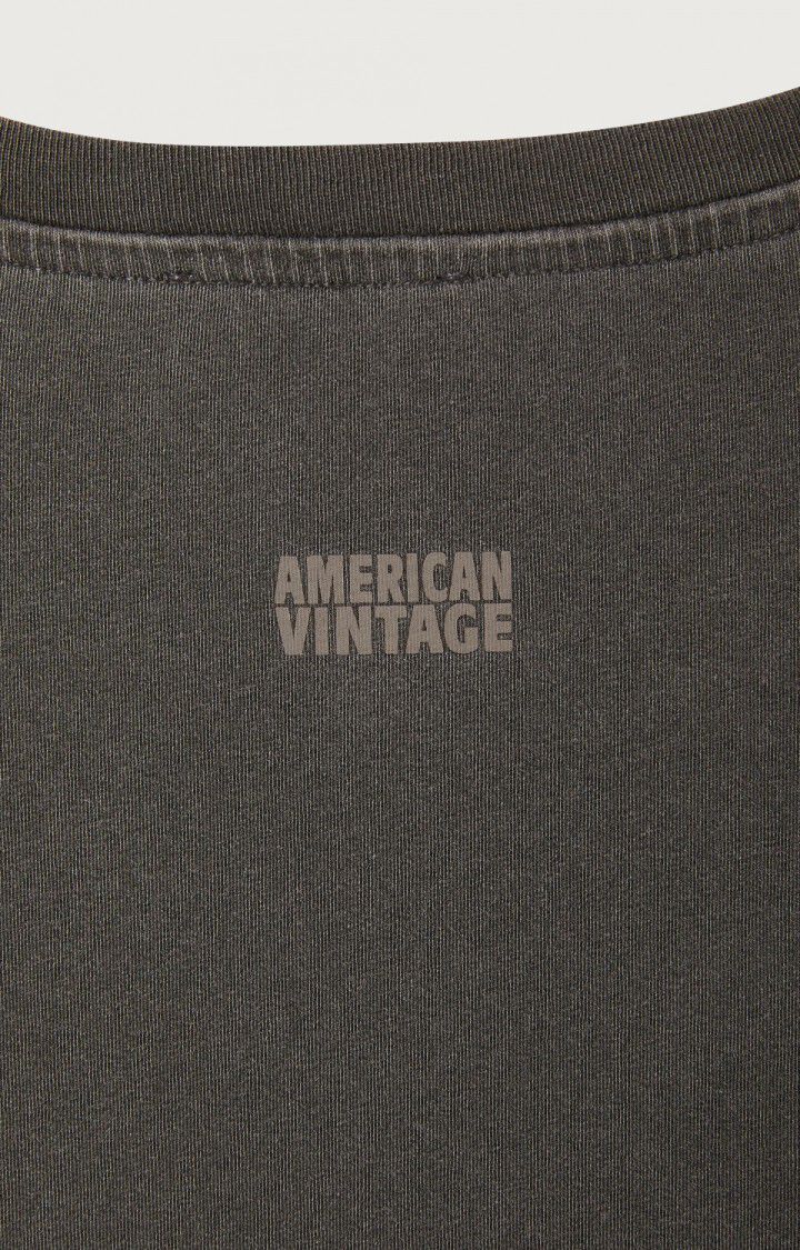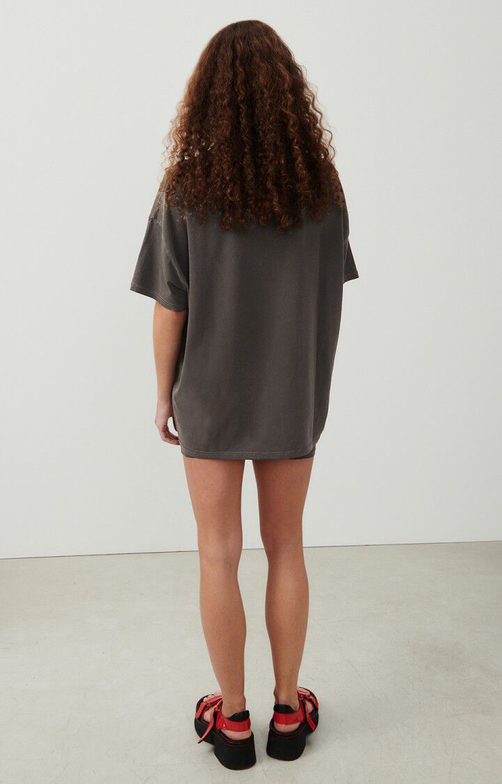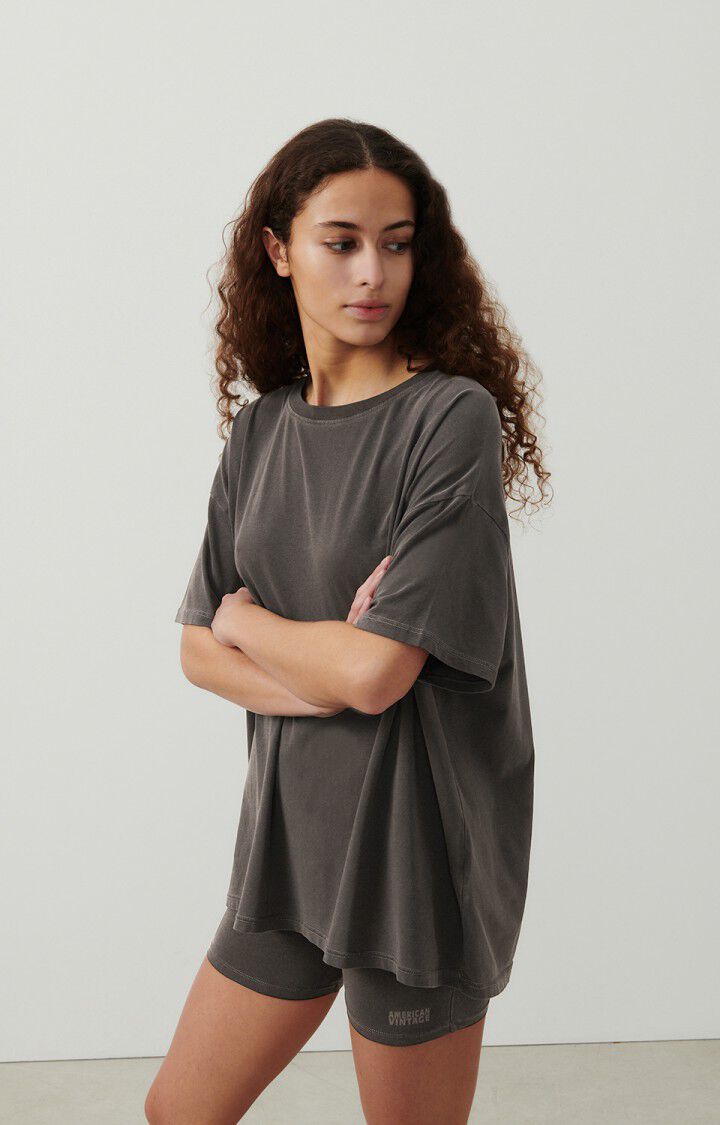 The Pymaz short-sleeved T-shirt features a loose, mid-length silhouette for a refined oversized look. Crafted from soft, heavy cotton, it drapes fluidly for effortless comfort, while the boat neckline adds a subtle casual elegance. A vintage treatment lends a gently worn finish, creating a sporty yet authentic character. Ideal for layering under knitwear and pairing with flowing trousers.
